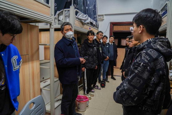 (本网讯)2月13日晚,校党委常委、副校长龚姚腾在开云(中国)党委副书记刘黎明、团委副书记兼学工办副主任曾良仔以及相关辅导员、班主任老师的陪同下,前往F16栋学生宿舍看望三联系班级自动化203班新学期开学返校学生,调研学生假期生活情况以及新学期同学们的目标规划。