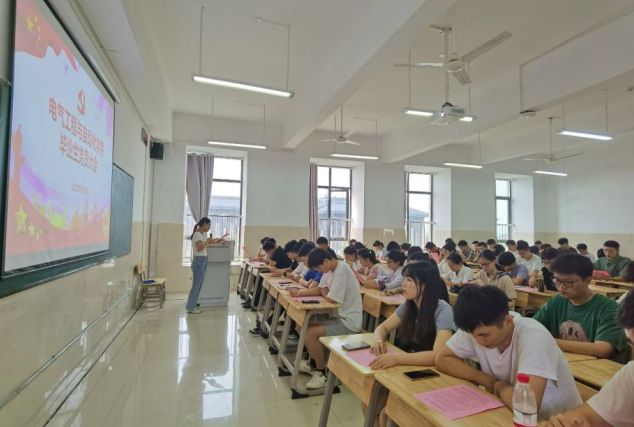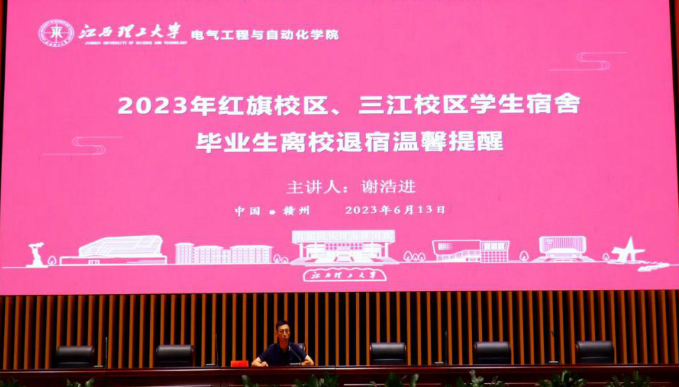 辅导员谢浩进作了主题为“学生宿舍毕业生离校退宿温馨提示”的毕业生文明离校程序指导,强调要爱护学校各宿舍公用设施,保证退宿服务办理流程顺利进行,完成完整毕业程序,文明离校。