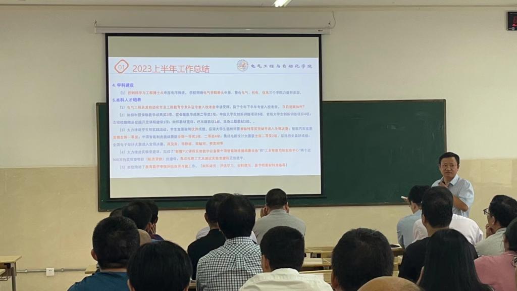 会议伊始,刘细平院长首先对各位新进教师和新加入我院的教师表示了热烈的欢迎。接着从党的建设、人才队伍、科研与社会服务、学科建设、学生培养管理等方面总结了上半年学院工作取得的成绩和亮点。同时,对下半年重点工作、开学初具体工作进行了详细部署,并结合院情对学院未来发展提出了要求。最后以“勇担责任、踔厉奋发、攻坚克难、共创未来”四个词号召全体教师凝心聚力、再接再厉,共同为学院高质量发展贡献自己的力量。
