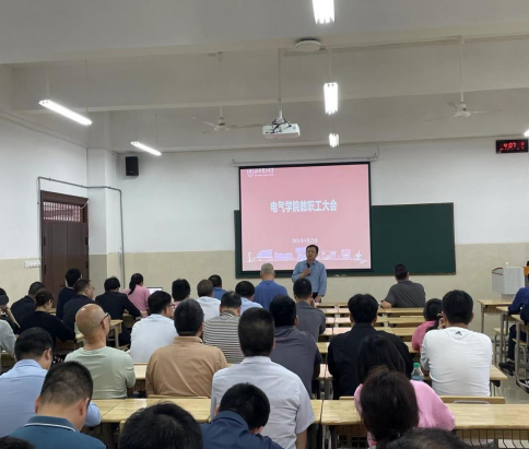 接着,刘细平院长宣布了《关于电气工程与自动化学院调整部分内设机构及部分内设机构负责人的批复》,然后针对学院重点工作和年度工作目标进行了强调,希望以此次机构调整和负责人调整为契机,全体教师要锚定目标再发力,增强工作执行力,提高工作责任心和落实度,凝心聚力,实干争先。