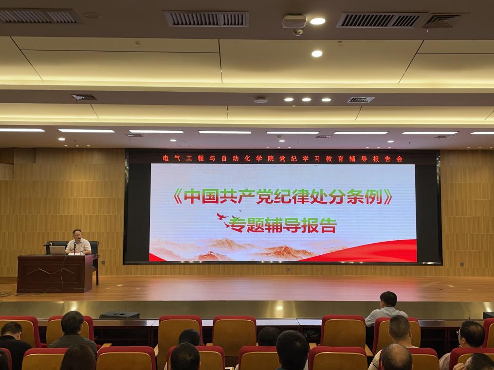 为深入学习贯彻新修订的《中国共产党纪律处分条例》(以下简称“《条例》”),进一步增强全体党员干部的纪律意识和规矩意识,推动党纪学习教育走深走实,5月14日,开云(中国)举办党纪学习教育专题辅导讲座,邀请学校社会科学处处长王小元教授进行授课。学院全体师生党员参加,学院党委书记于仲安主持。