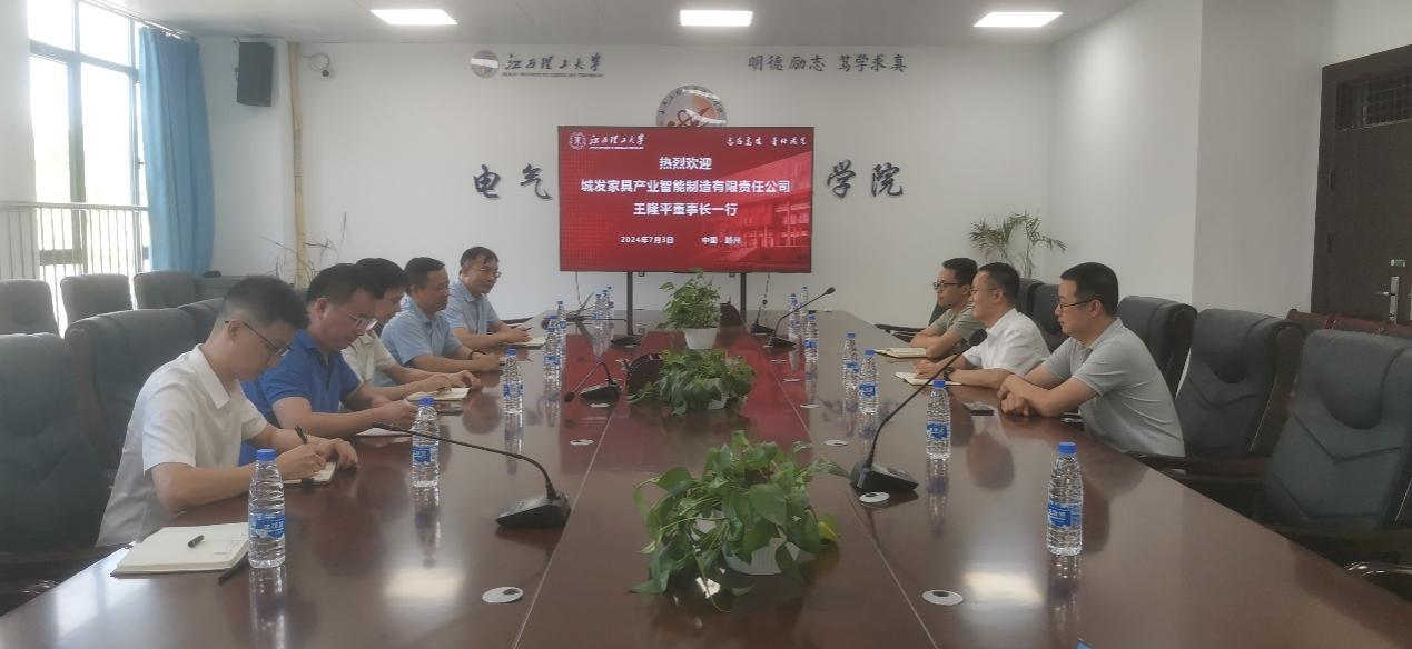 7月3日,赣州市南康区城发家具产业智能制造有限责任公司董事长王隆平一行来我院交流,电气学院院长刘细平、副院长黄朝志、自动化与智能科学系相关教师参加会见并在智汇楼220会议室举行座谈会。