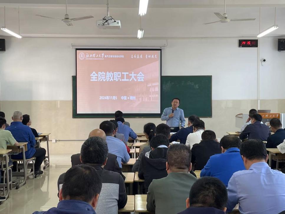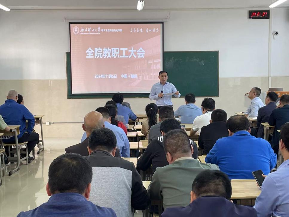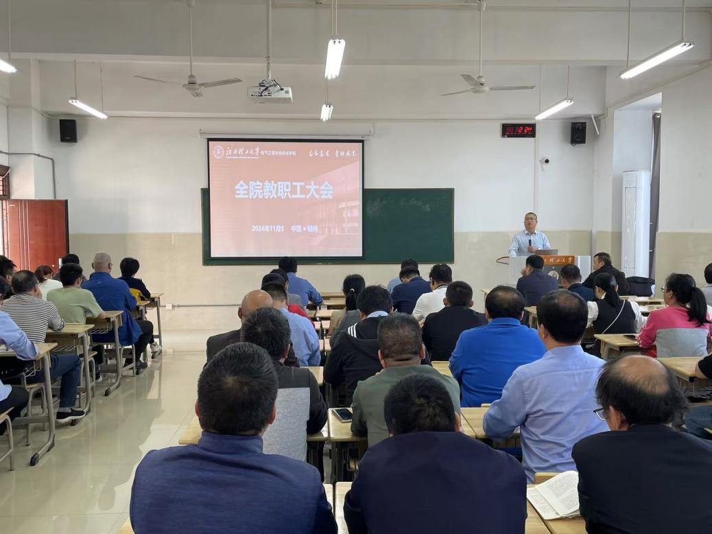 11月5日,电气学院在智汇楼203召开了全院教职工大会。会议由学院党委书记于仲安主持,全体教职工参加。