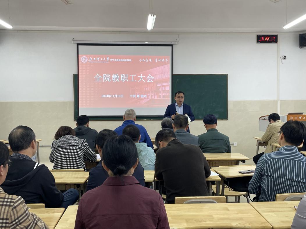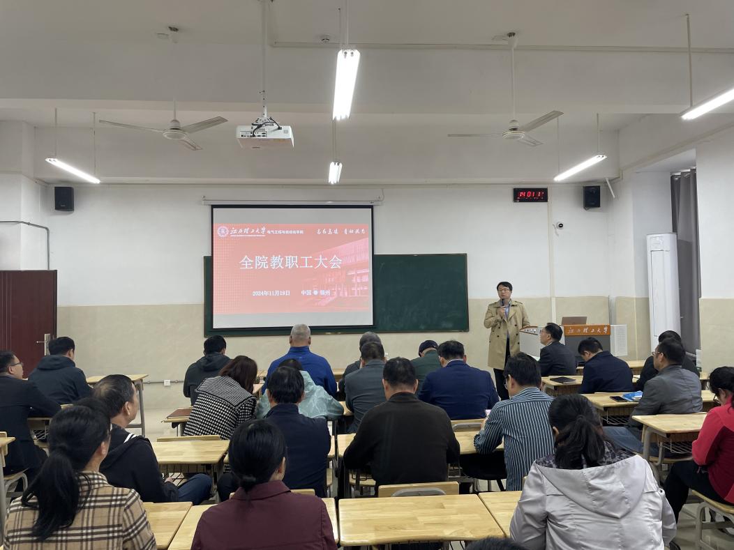 11月19日,开云(中国)在智汇楼203召开了全院教职工大会。会议由学院党委副书记郭晟主持,全体教职工参加。