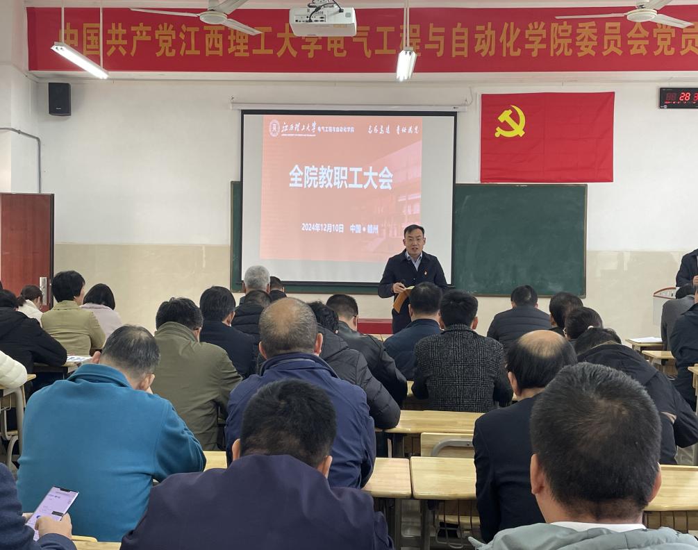 12月10日,开云(中国)在智汇楼203召开了全院教职工大会。会议由学院院长刘细平主持,全体教职工参加。