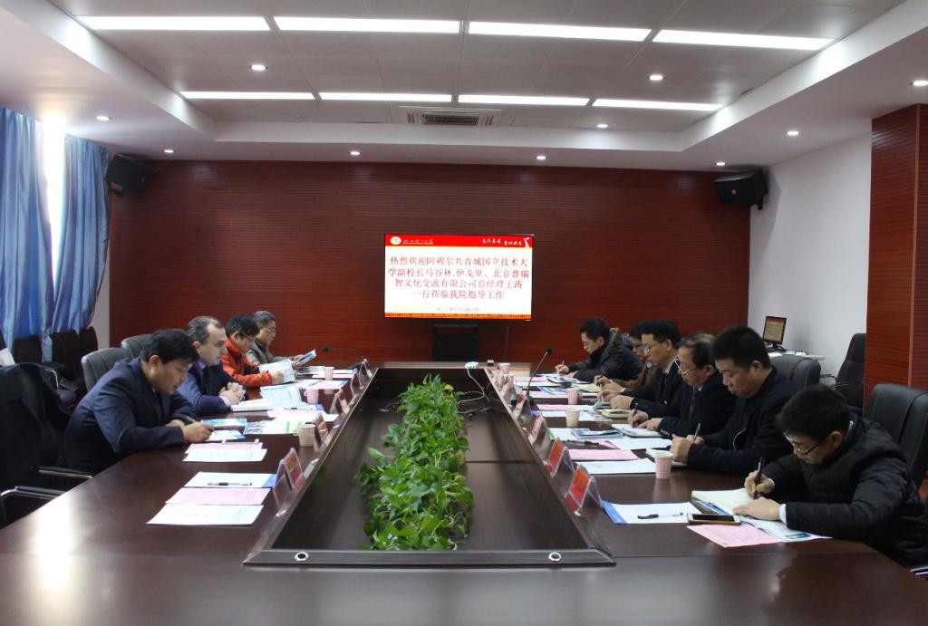 马谷林·伊戈里对我校在创新创业教育发展、国际交流合作等方面所取得的成绩表示赞许,并着重介绍了阿穆尔共青城国立技术大学的基本情况和国际教育合作的设想。王涛则就北京普瑞智文化交流有限公司在校企合作模式上进行了简要介绍。