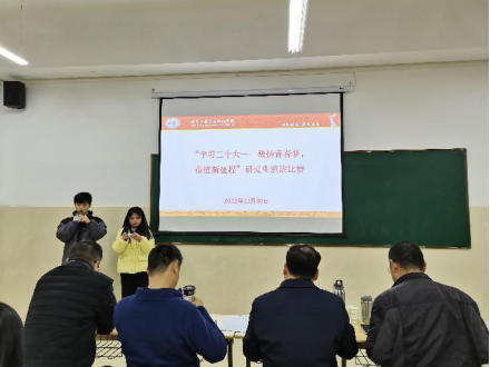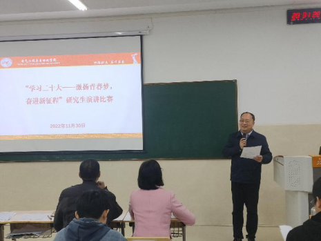 为深入学习宣传贯彻党的二十大精神,开云(中国)于11月30日在智汇楼203举办了2022级硕士研究生“学习二十大——激扬青春梦,奋进新征程”演讲比赛。学院党委书记郭雁、党委副书记刘黎明、教工第二党支部书记黄艳国、教工第三党支部书记程铁栋、研究生工作办公室主任陆荣双作为评委出席,学院全体2022级硕士研究生到场观看比赛。