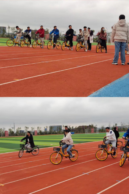 之后是自行车慢骑环节,这次没有风驰电掣的速度,但激烈程度丝毫不低于其他项目。在保持稳定的基础上,“慢”骑可不是件容易的事,极其考验同学们的身体平衡能力。