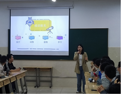 在“你画我猜”环节,由同学们自行组队,猜词同学背对大屏幕,比画同学可用肢体语言或者语言进行描述,根据最后的总积分进行排名,并对前三名的队伍进行奖励,整个环节极其考验队伍默契度,增进友谊,充满挑战与欢乐。