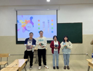 晚会进行到“击鼓传花”时,同学们围在一起,主持人把书(花)递给领头者,当音乐(击鼓)声响起,领头者传给下一个人,依次传递,音乐随机停止时手持书的同学将表演才艺!被选中的同学们进行了诗歌朗诵、唱歌表演、故事分享等,才艺多多。