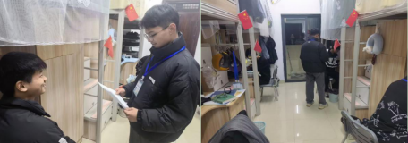 自律委员会于12月2日安排人员值班查寝,确保学生安全到寝,督促宿舍环境卫生政治,安全隐患排查。查寝不仅包括检查卫生状况,学生到齐人数,还包括检查寝室存在的风险并将此上报给学校。