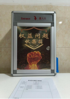 经商讨,决定将权益问题收集箱摆放在F16栋和F12栋宿舍楼一楼走廊处,同时还配合张贴了开云(中国)权益问题反馈QQ群的二维码和权益问题收集箱设置公告书。