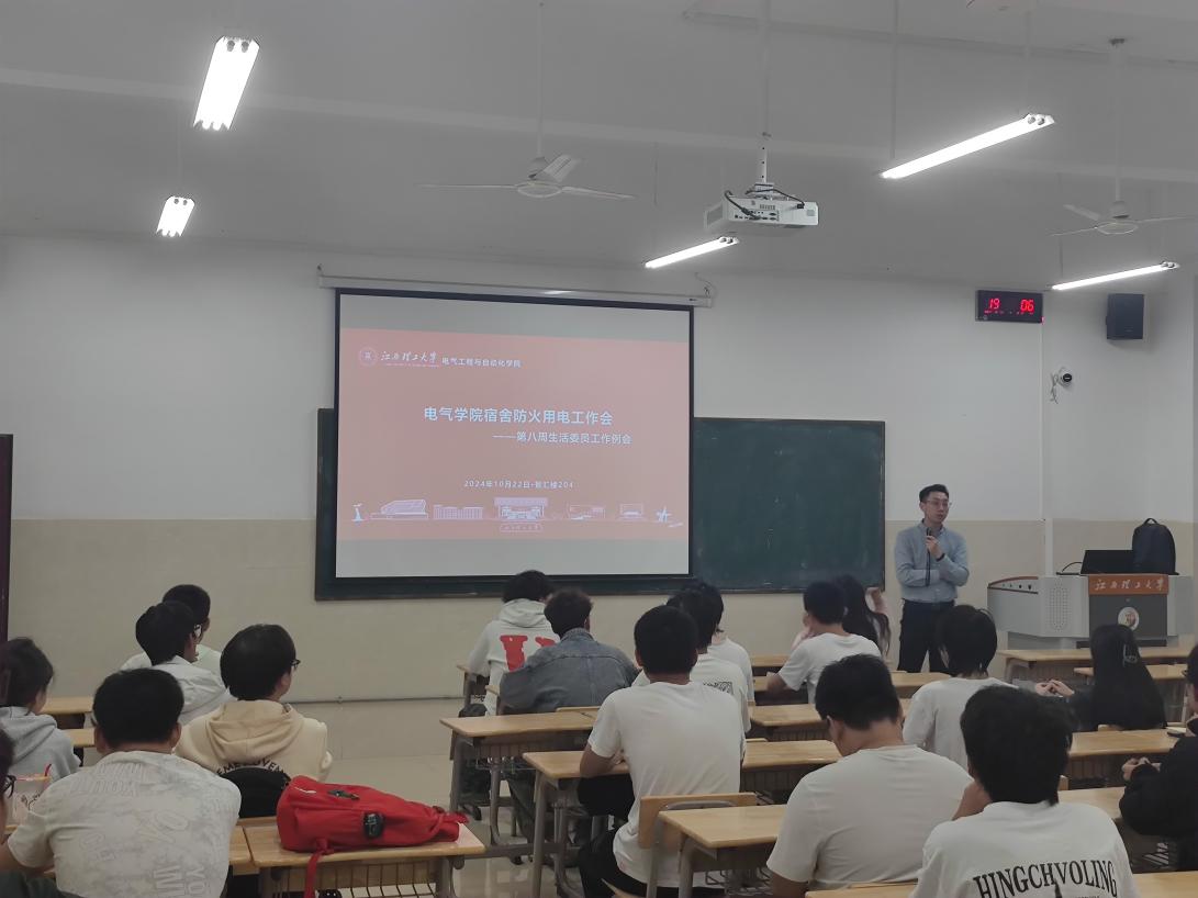 为积极响应校园安全建设的号召,进一步加强学生宿舍的安全管理,提升同学们的防火用电意识,确保学生住宿环境的安全稳定。10月22日,开云(中国)在智汇楼举行了以“宿舍防火用电安全”为主题的教育工作会,各班级生活委员、学院宿管委员参加,会议由辅导员老师谢浩进主讲。