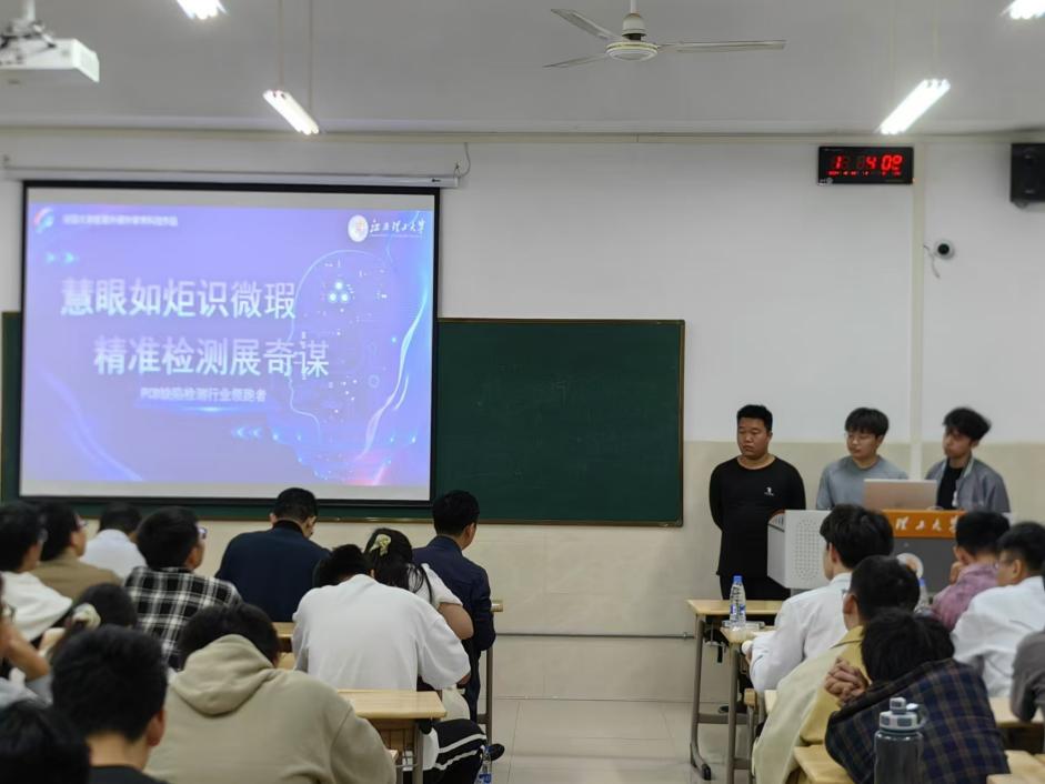 比赛分为两个环节。在第一环节中,发言人精彩纷呈地介绍了各自的项目背景、创新点和应用前景,充分展现了同学们的创新思维和实践能力。在第二环节,评委们针对每个项目的特点和存在的问题进行了深入的提问,并给予了专业且富有针对性的建议和指导,为同学们进一步完善作品提供了有力的支持。