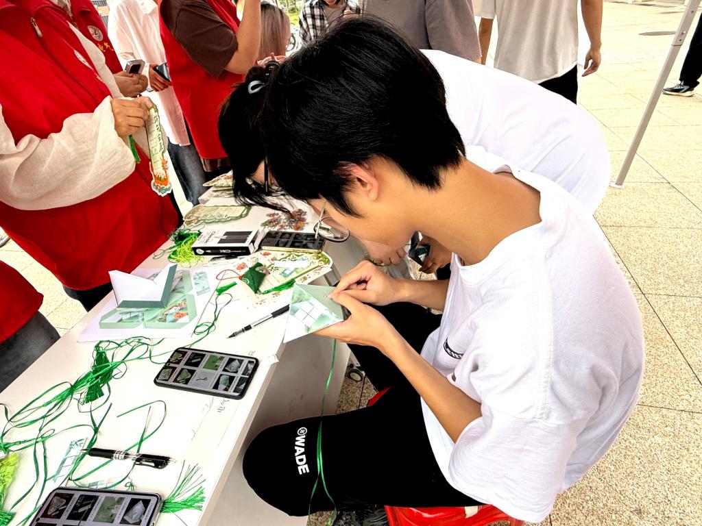 在“笔墨书端阳”环节,参与者打破对粽子的传统认知,用硬笔书法在特制的“粽身”上书写端午吉言。一笔一划间,祝福与心意跃然纸上。写完后,大家还可以为“书法粽”系上红绳,将其摇身一变成为独特的节日挂饰。