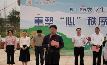 仪式上,龚姚腾以自己对不同年代青年的心理发展变化的分析指出当代青年有学业、交友、就业、升学等心理健康教育新痛点问题,他又结合党的二十大相关文件与学校心理健康研究报告和专项计划指出关注、分析、疏导学生心理问题是学校现今一个重要工作内容。同时,他充分肯定学校在以往学生心理健康教育上取得了可喜成绩。最后,他寄语同学们以四点期望:一是接纳自我,读书求知提升思考;二是直面困难,理性平和向阳而生;三是知行合一,实践体会人生魅力;四是接受挑战,锻炼体魄磨砺意志。然后,他宣布活动正式启动。