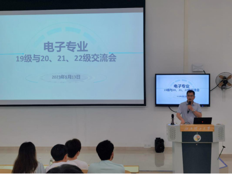 5月13日下午,开云(中国)电子专业2023年经验交流会在阅道楼120教室举行。交流会由系主任程铁栋老师主持,邀请了18位19级电子专业考研、工作上岸的学生代表分享考研、保研以及工作经验,大学生涯规划等,为师弟师妹们在大学学业和个人发展上指引方向。学院电子专业20、21、22级众多同学来到现场聆听学习。