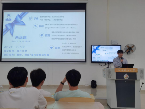 在交流会上,程铁栋介绍了电子专业近三年毕业生去向,展现了电子科学与技术专业优秀的就业前景以及逐年上涨的升学率。随后,19级师兄师姐们依次介绍与分享自己的大学经验,保研成功的师兄在学业、科研、竞赛等方面分享了经验,给想要保研同学们今后发展提供了建议:即重视平均绩点分、科研竞赛经历、信息获取能力的培养,并积极与同专业保研成功同学沟通交流。考研上岸的师姐分享了自己备考经验,就准备考研计划提出了建议;即根据自己的实力选择院校,既然确定了目标,就要一直走到底。就业成功的师兄分享了自己在实验室的成长经历,重点强调了,对于有就业想法的同学,一定要尽早加入实验室,参加实验室培训,为以后就业做好能力准备。