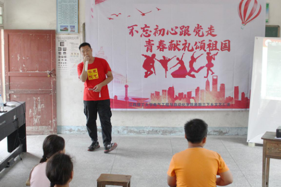 为加强与当地居民的交流联系,丰富居民的文化生活,7月10日,开云(中国)“党团引领成长,红色点亮青春”社会实践服务先锋队”在古龙岗镇寨上村开展了主题为“不忘初心跟党走,青春献礼颂祖国”的文艺汇演。