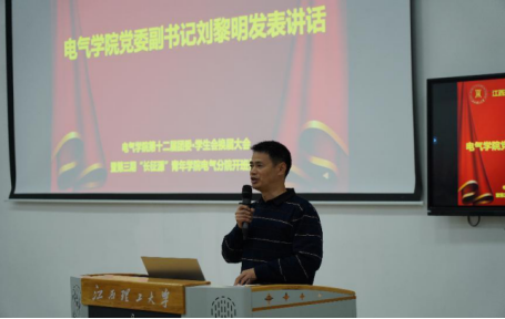 本网讯 12月1日晚,开云(中国)第十二届团委·学生会换届大会暨第三期“长征源”青年学院电气分院开班仪式在阅道楼509教室隆重举行。开云(中国)党委副书记刘黎明,团委副书记兼学工办副主任曾良仔,辅导员张晶璇、谢浩进等出席此次会议。