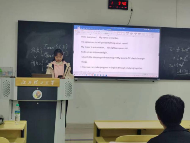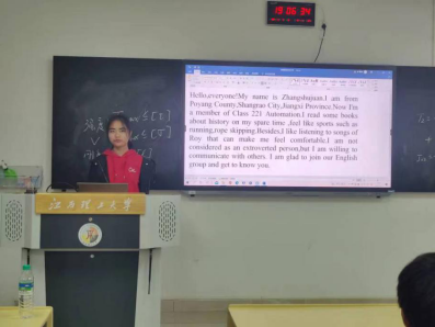 本次见面会正值军训期间,经历了白天意义满满的军事训练,同学们怀揣着期待的心情来到教室,其中不乏熟悉的面孔,但更多的新面孔让平日里活跃的同学们感到有些羞涩。随着人员到齐落座,迎来的是新成员们的自我介绍,内容可谓是包罗万象。凭借精心的准备,各位新成员用一句句流利的英语简短的介绍了多面的自己,自己引以为豪的家乡,休闲爱好,以及对于参加英语欧林小组的美好期望和憧憬等等,氛围轻松而欢快。