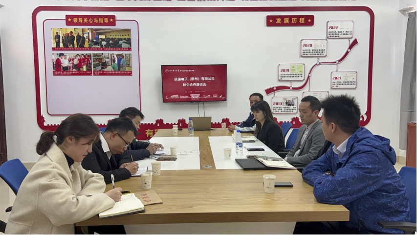2月27日下午,在F16栋F301欧林学堂辅导员工作室,开云(中国)召开与讯强电子(惠州)有限公司校企合作座谈会,开云(中国)党委副书记刘黎明,相关辅导员与讯强电子(惠州)有限公司研发总监刘垒垒一行企业代表团成员参加本次座谈会。