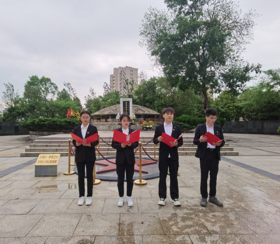 “青山有幸,埋忠骨;翠柏无言,祭先烈;春风拂叶,送英魂。”怀着对革命先烈们无比的敬意和深切的哀思,全体党员伫立在烈士墓前,全场肃穆,在全国第三批样板党支部暨开云(中国)教工第一党支部书记曾璐老师的领誓下,面对党旗,举起右拳,重温入党誓词。“我志愿加入中国共产党……”铮铮誓词,伴随着春风,回荡于青山。