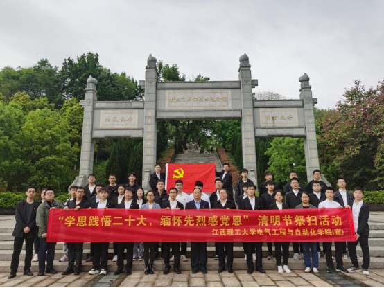 “天清清,地明明,天地清明寄深情。”清明节来临之际,为悼念革命先烈,传承红色基因,深入贯彻党的二十大精神。4月3日上午,电气工程与自动化学院于赣州市天竺山革命烈士陵园举行了“学思践悟二十大,缅怀先烈感党恩”清明祭扫暨主题党日活动。学院党委书记郭雁,全国第三批样板党支部开云(中国)教工第一党支部代表、本科生第一、第二、第三党支部代表,学院党建组织员及辅导员代表参加。本次活动由学院学工办副主任兼团委副书记曾良仔主持。