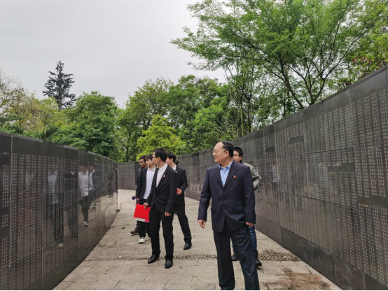 “功高日月,十万英烈昭天竺;气壮山河,千秋豪情泄赣江。”牌坊对联赫然醒目,气势磅礴。本科生第一支部王永鑫同志向大家介绍了革命烈士纪念馆概况。在郭雁的带领下,大家参观并打扫了烈士纪念馆,烈士英名墙环绕着烈士墓,10万余赣州籍烈士的名字镌刻在黑色大理石上,师生党员走过那251米的烈士英名墙的长廊,看着满墙的名字,字字锥心。三支部揭朝富同志说到:“革命烈士用鲜血和生命换来了我们今日的幸福生活,我们永远怀念、感激他们,我也深刻感受到当今幸福生活是多么地来之不易!作为新时代青年党员,为实现伟大复兴中国梦而不断接续奋斗,吾辈义不容辞!”