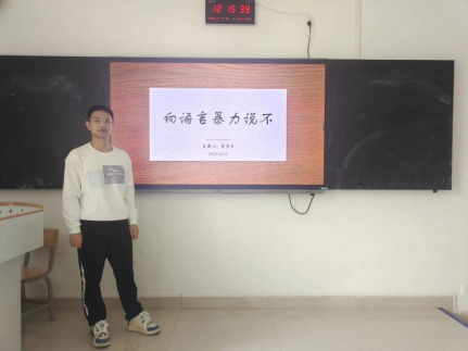 常家宁同学首先解释语言暴力的含意,危害和来源。他认为语言暴力可能来自上级,陌生人,或亲近的人。并建议大家对不同类型语言暴力采取不同的自我保护机制。