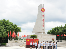 队伍在中国红军长征出发纪念碑前开展“长征壮举万世瞩目,红军精神光耀千秋”的主题团日活动。曾良仔作了主题为“缅怀先烈”的致辞,其中,他提到周恩来同志对于都人民为革命无畏牺牲奉献的高度赞扬,提醒同学们要铭记那段历史,号召同学们担负起时代责任与历史使命,为祖国发展事业奉献青春力量。