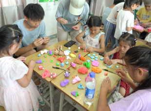 在“‘塑’造未来”黏土趣味手工活动中,服务队同学先细心指导了黏土手工制作的技法。在正式制作现场,大家相互配合,发挥想象力,创意混色、耐心塑形、精准拼接,用五颜六色的黏土,捏出了一个个可爱的游戏卡通形象与逼真的水果蔬菜作品。在欢乐的氛围里,孩子们体验了手工制作乐趣,锻炼了创意想象力与动手操作能力,同时给予孩子们陪伴温暖,帮助他们减少成长的烦恼。