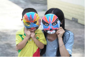 在正式手工绘谱活动中,队员们发给小朋友们素面脸谱面具,对绘图技法与比例构图进行教学。在正式画脸谱时有复杂步骤,准备阶段要构思、起稿、调色,着色阶段有揉、勾、抹、破等技法。同时,脸谱制作还对艺术美学感知、手部灵巧度、心性等都有较高要求。但在队员们的陪伴和指导下孩子们依旧学得津津有味,脸谱颜色时红时蓝,或黑色点缀其中,一丝一笔,细心描绘,最终完成了自己的脸谱。孩子们也由此产生了巨大的成就感,在欢乐的氛围中感受到了脸谱艺术的特殊魅力。