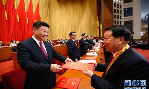 2016年7月1日,庆祝中国共产党成立95周年大会在北京人民大会堂隆重举行。这是习近平等在大会上向受表彰的先进个人和先进集体代表颁奖。新华社记者 鞠鹏 摄