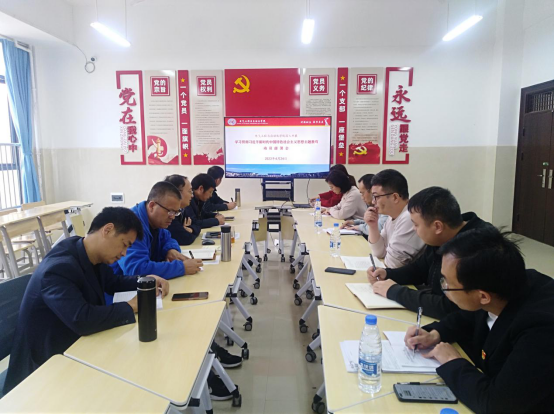 郭雁带领与会人员学习了习近平总书记近期重要讲话精神。传达了学校学习贯彻习近平新时代中国特色社会主义思想主题教育动员大会精神,对学院开展主题教育进行了具体工作部署。要求全院党员干部严格落实主题教育各项安排,加强组织领导务求工作实效,把开展主题教育同推动中心工作结合起来,同破解学院发展困难问题结合起来,努力推动主题教育走深走实、取得良好实效。(图/文 林远洲 一审/孟丽 二审/刘黎明 三审/郭雁)