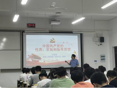 5月22日晚,机电学院党委书记古莹奎在阅道楼205教室向同学们介绍了中国共产党的性质、宗旨与指导思想。课上,他介绍了毛泽东思想、邓小平理论、“三个代表”重要思想、科学发展观、习近平新时代中国特色社会主义思想等重要思想。他告诉学员们,要明确新时期党员的标准和具体要求,学习贯彻党的十九大、二十大重要精神,树立正确的入党动机,确立为共产主义事业奋斗终生的信念。