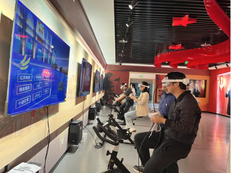 苏区精神展馆运用了虚拟现实(VR)技术逼真还原当时的场景,对苏区历史中的重要事件进行形象、生动的再现。讲解结束之后,党员教师们纷纷体验了相关的VR体验项目。