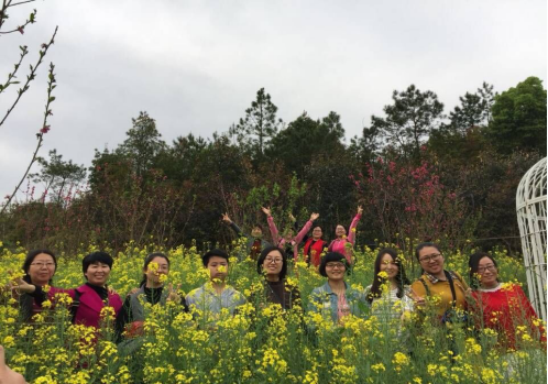 上午九点,学院工会委员、女教职工们出发前往沙石镇花溪间。二月初二龙抬头,春回大地,万物复苏,百花齐放,大家纷纷赏花拍照,亲近自然。在这样的美景下,曾璐老师发表感慨,“桃花红,梨花白,油菜花黄,但却不及女教职工们的笑容灿烂。”