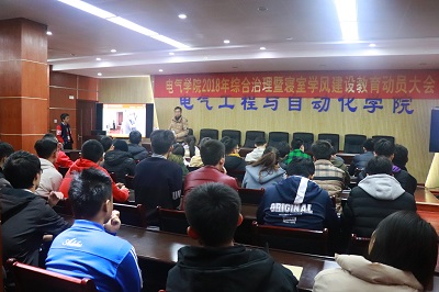本网讯(图/阮文斌 文/岑福飞 编辑/曾良仔 审核/刘黎明)1月7日晚,我院在电气楼201学术报告厅召开了2018年综合治理暨寝室学风建设教育动员大会,我院15、16、17级各班班委参加了本次大会,会议由学工办(团委)负责人曾良仔主持。