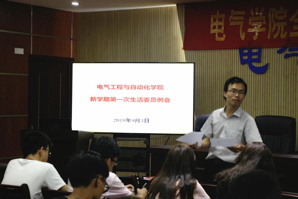 学工办兼团委负责人曾良仔在电气楼201主持召开了班长团支书会议及生活委员例会,会上,他着重强调了关于下发文件要求的各项安全隐患排查工作,并督促各位班长团支书以及生活委员做好学生宿舍的安全隐患排查工作。