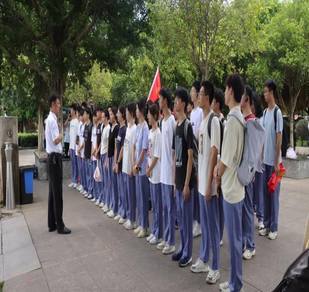 活动在庄严肃穆的长征出发第一地纪念碑前拉开帷幕。随着一声声雄壮的国歌声,全体人员肃立,向革命先烈致以崇高的敬意。师生代表共同敬献花篮,表达对英雄烈士们的无尽哀思与崇敬。学生代表李思淼学生代表在发言中表达了对革命先烈的敬仰之情,并承诺将继承和发扬长征精神,努力学习,报效祖国。郭晟则寄语青年学子,要铭记历史、不忘初心,传承红色基因,勇于担当时代赋予的使命。随后,郭晟向学生代表授旗,标志着此次红色之旅的正式启程。